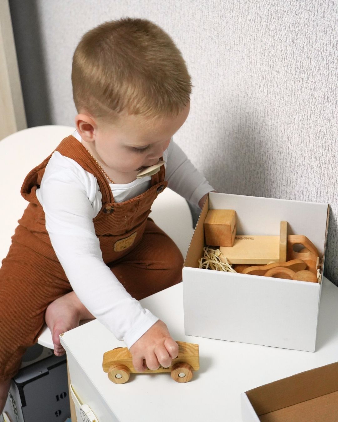 Ці іграшки пахнуть деревом — справжнім, затишним, як спогади з дитинства. Без батарейок, гучних звуків і пластмасових деталей — тільки натуральність і міцність, яка витримає навіть шалені “бррр” на килимі.