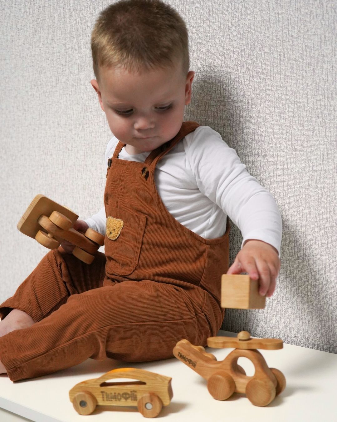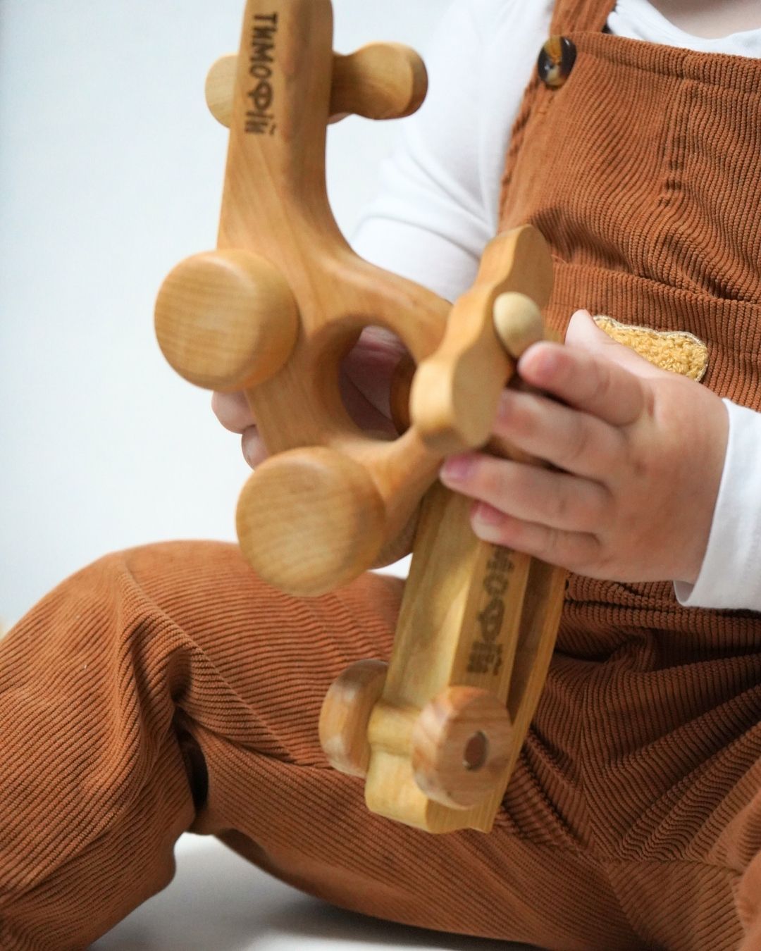 Ці іграшки пахнуть деревом — справжнім, затишним, як спогади з дитинства. Без батарейок, гучних звуків і пластмасових деталей — тільки натуральність і міцність, яка витримає навіть шалені “бррр” на килимі.