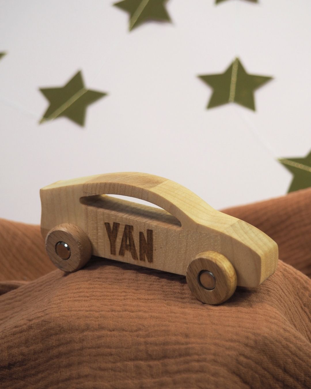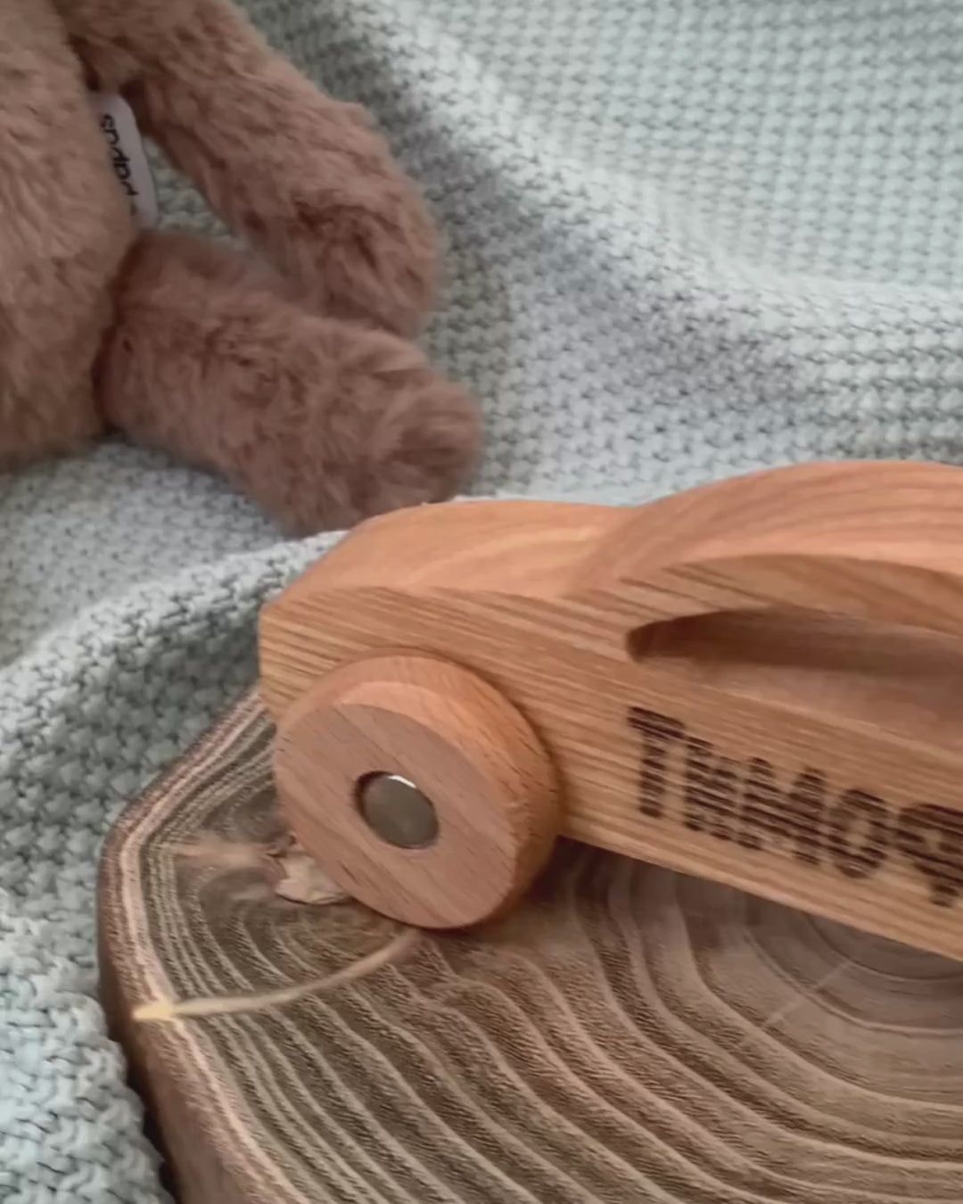 Лаконічний дизайн та приємна на дотик текстура дерева роблять цю машинку улюбленою іграшкою. Гравіювання додає особливого шарму й робить цю модель унікальною.