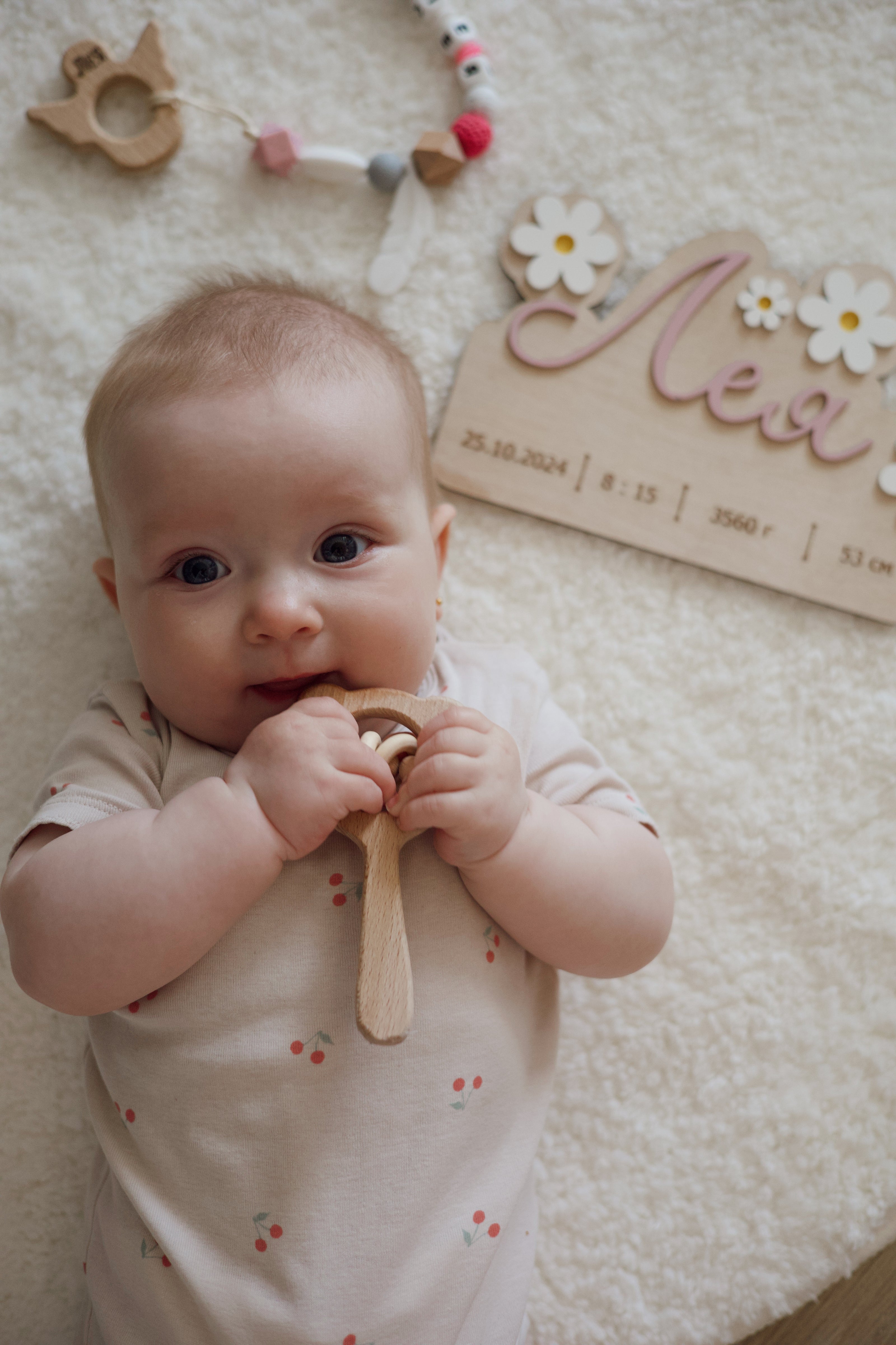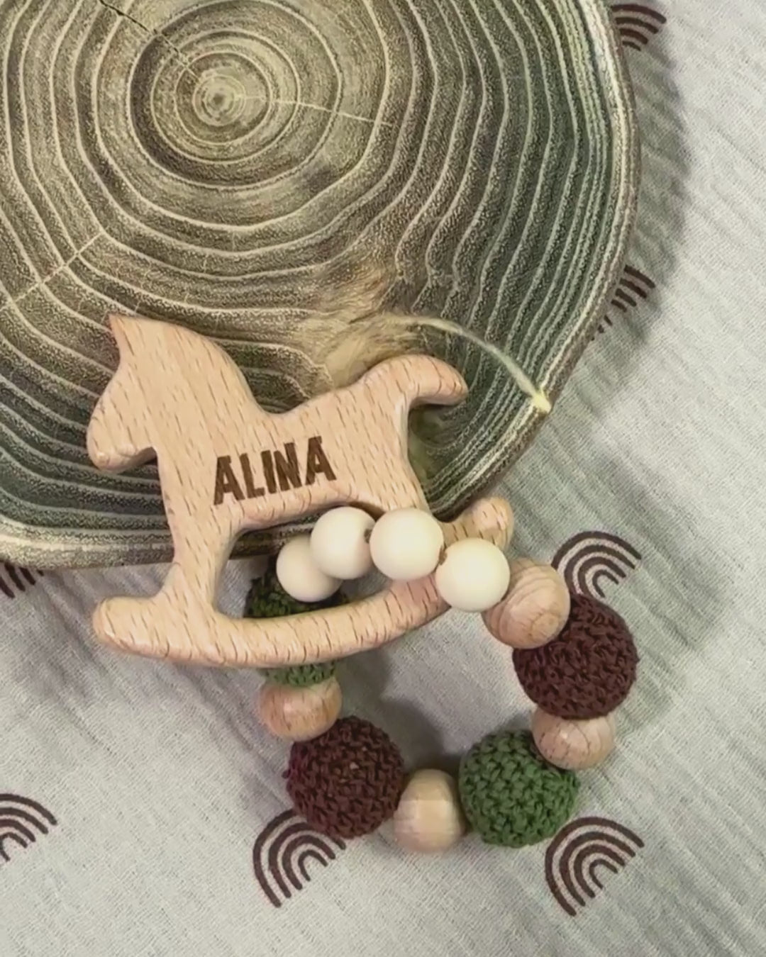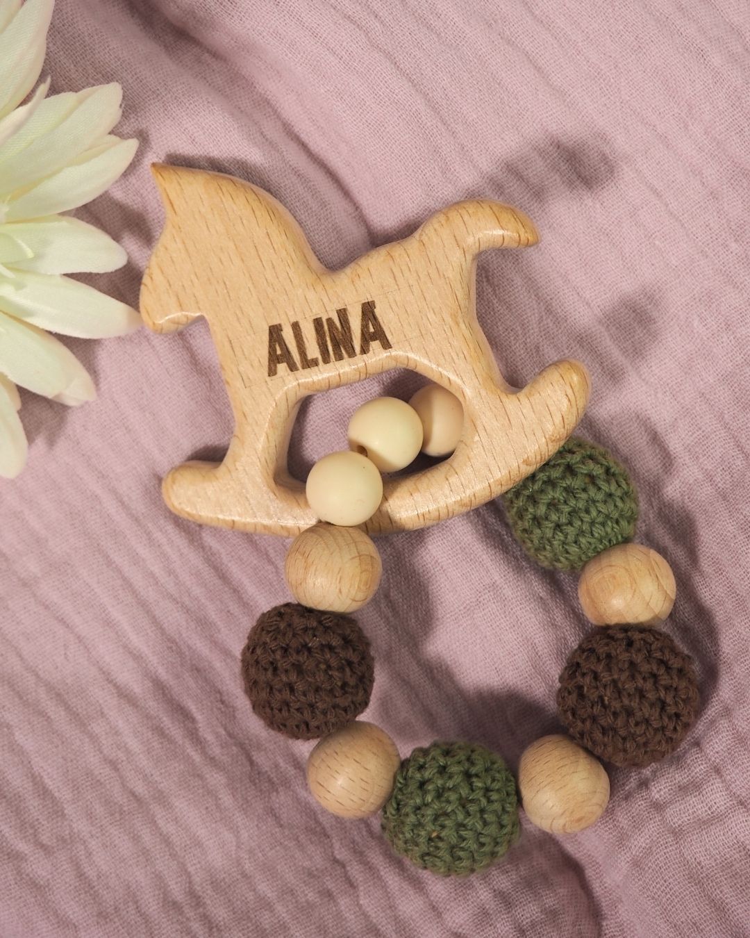 Безпечний, гладенький і зручний для дитячих ясен, цей гризунець із брязкальцем допоможе під час прорізування зубчиків та відволіче малечу у важливий момент. Гравіювання імені зробить його пам’ятним подарунком.
