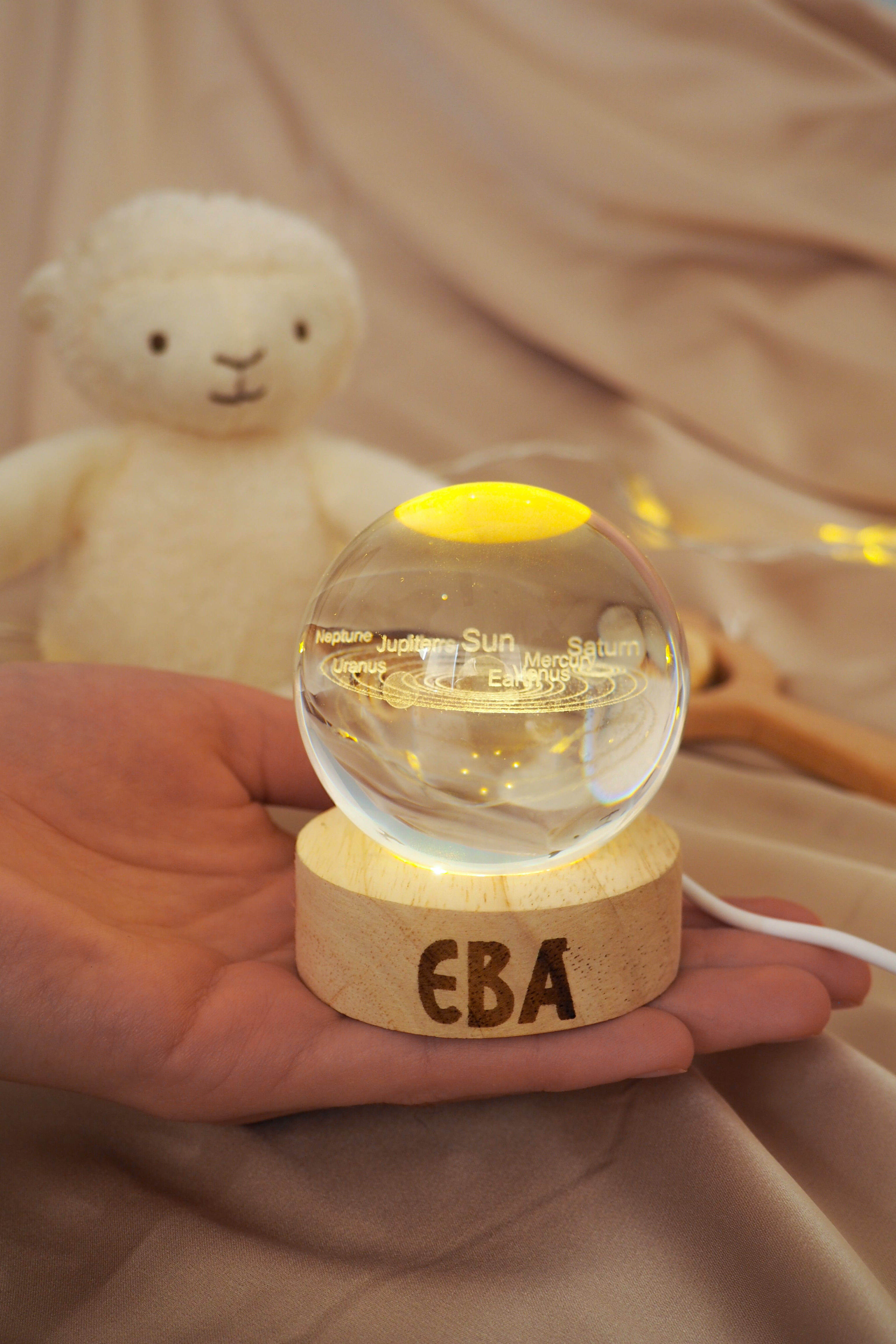 Це не просто освітлення — це перші космічні історії, які шепоче мама. Це спокій перед сном і м’яке світло, що заспокоює і обіймає. Ім’я на нічнику перетворює його на персональну планету, що світить лише для твого малюка.
