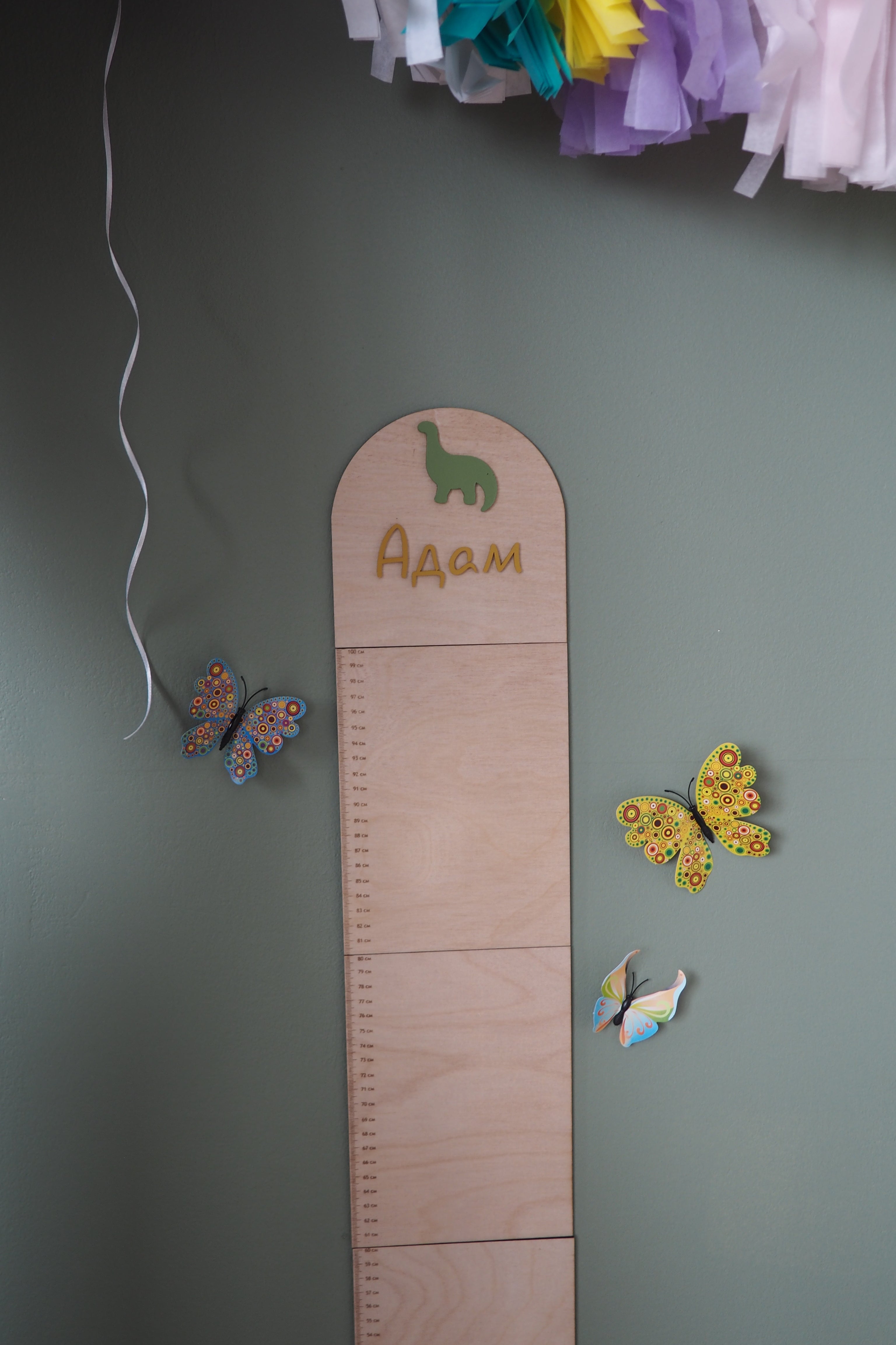Ростомір допоможе вам зафіксувати кожен сантиметр зросту — від перших кроків до великих стрибків. 6 окремих дерев’яних дощечок легко кріпляться на стіну й можуть зростати разом із дитиною.