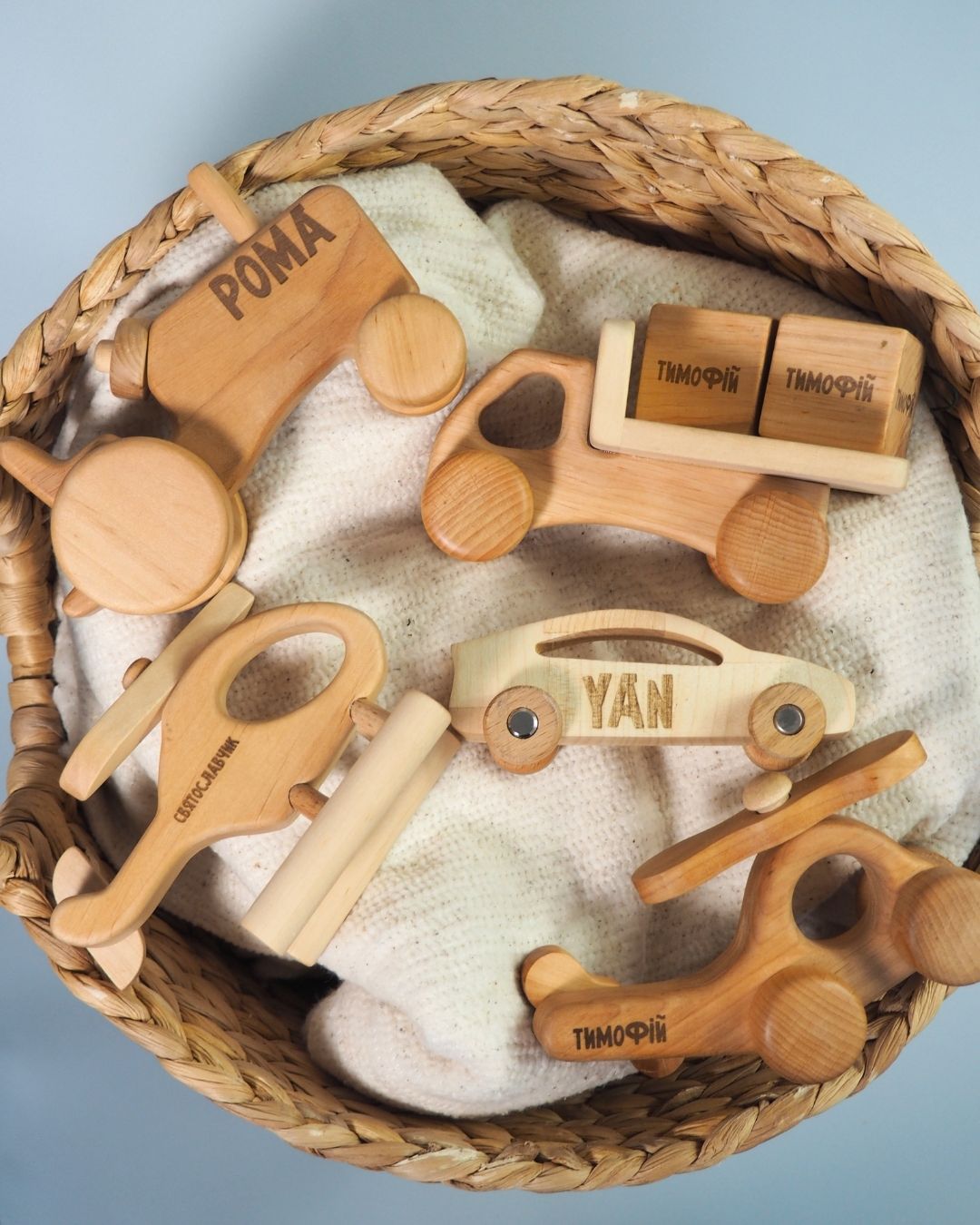 Ці іграшки пахнуть деревом — справжнім, затишним, як спогади з дитинства. Без батарейок, гучних звуків і пластмасових деталей — тільки натуральність і міцність, яка витримає навіть шалені “бррр” на килимі.
