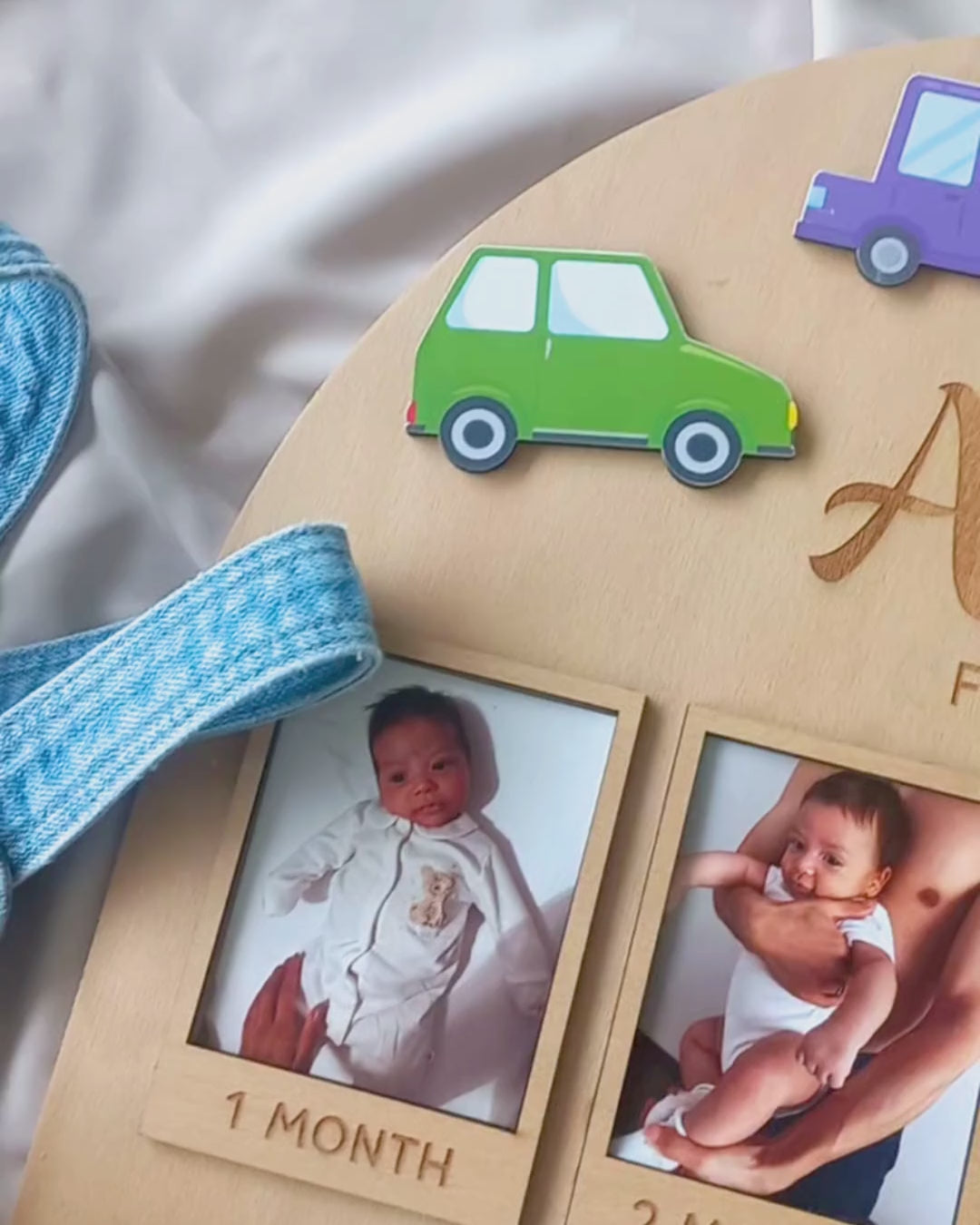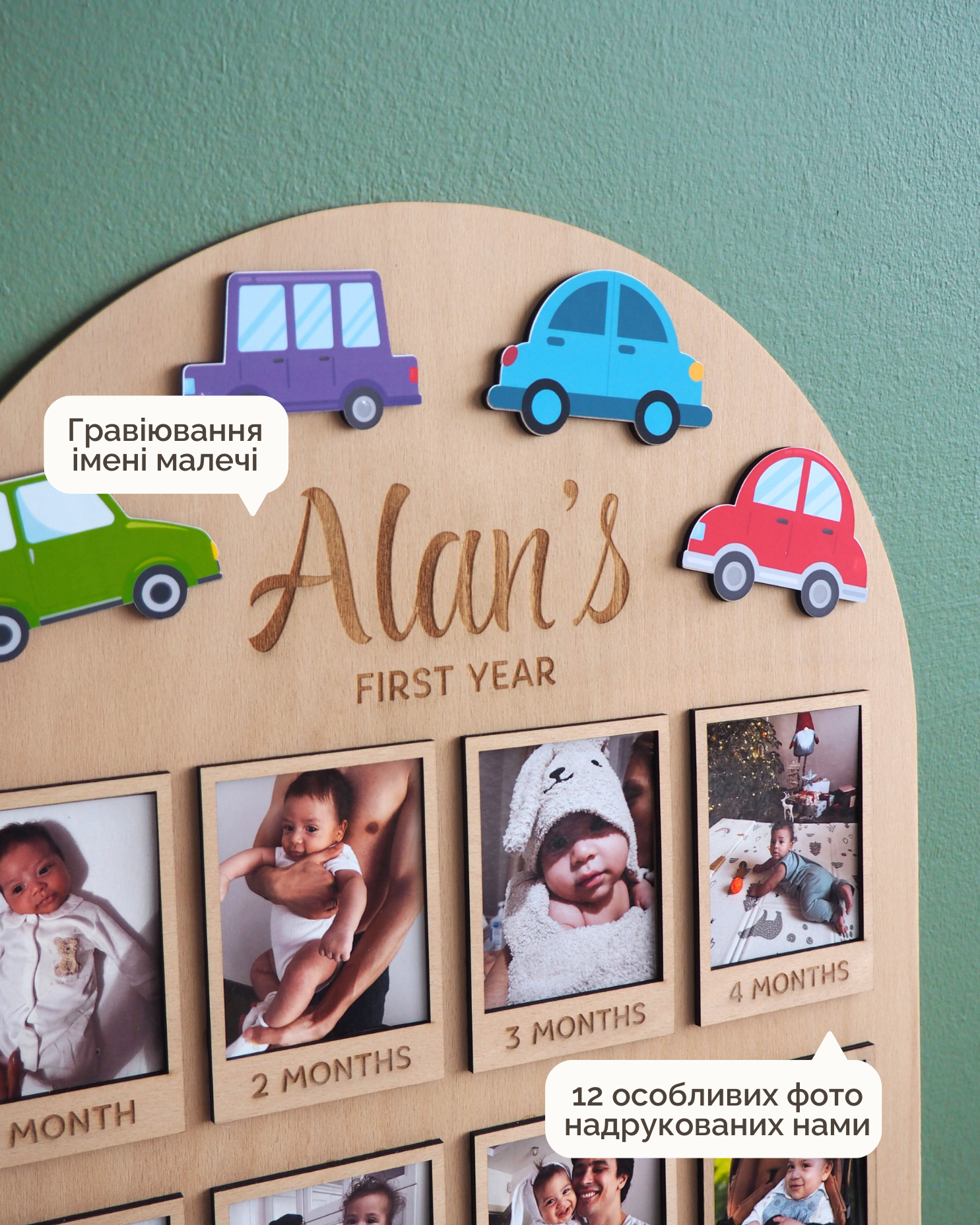 Табличка допоможе створити справжню історію першого року життя дитини. Кожне фото — новий місяць, нова посмішка, нове відкриття.